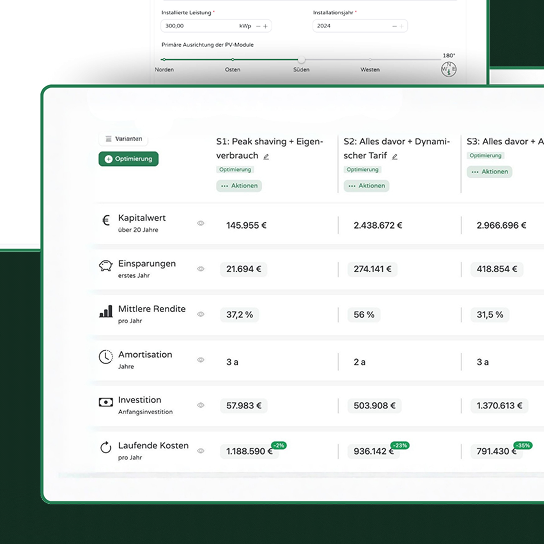 minimum energy ist die Plattform zur wirtschaftlich optimalen Planung und Multi-Use-Optimierung von Batteriespeichern, PV-Anlagen und Ladeinfrastruktur für Gewerbe und Industrie - das Ganze über alle Sektoren hinweg.